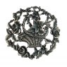 Pewter lid with a flower basket design.