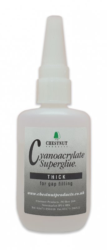This is the thick glue, useful for gap filling where you want to seal a crack in your timber, mixed with sawdust if you want. Slower drying, up to 60 seconds when applied thickly.